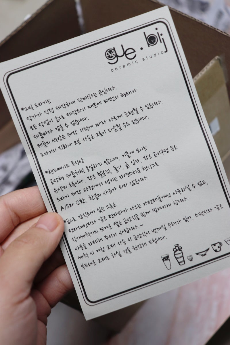 러블리한 스마일 스티커도 마음에 들었지만 자세히 안내된 안내문에도 감동했다. 그릇이나 도자기 관리가 서툰 나 같은 사람에게는 딱 좋은 가이드가 된다.